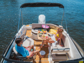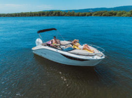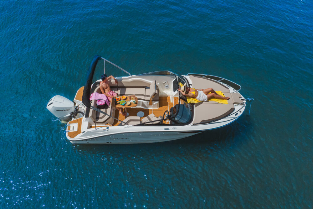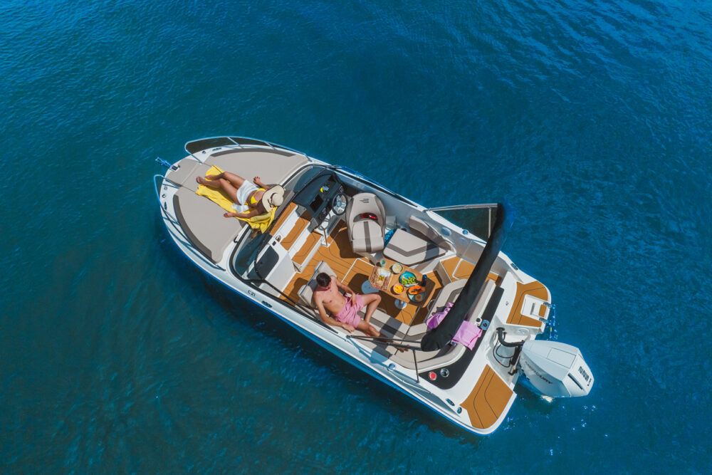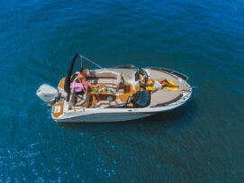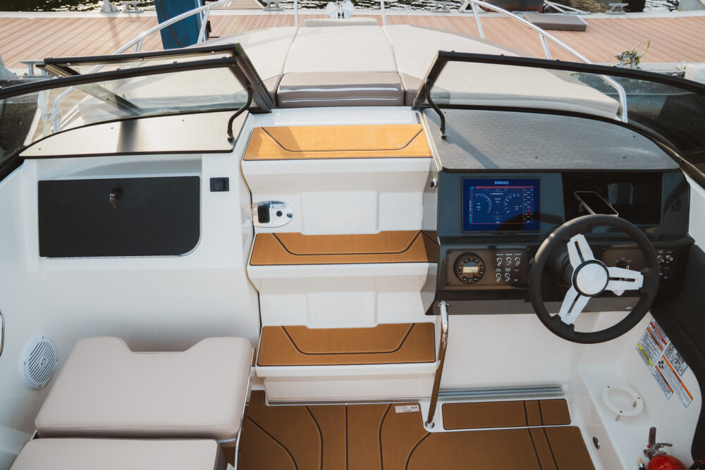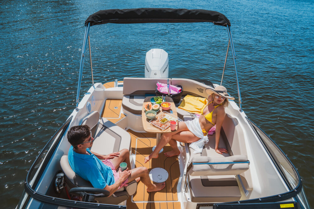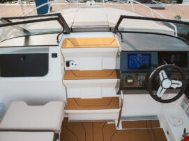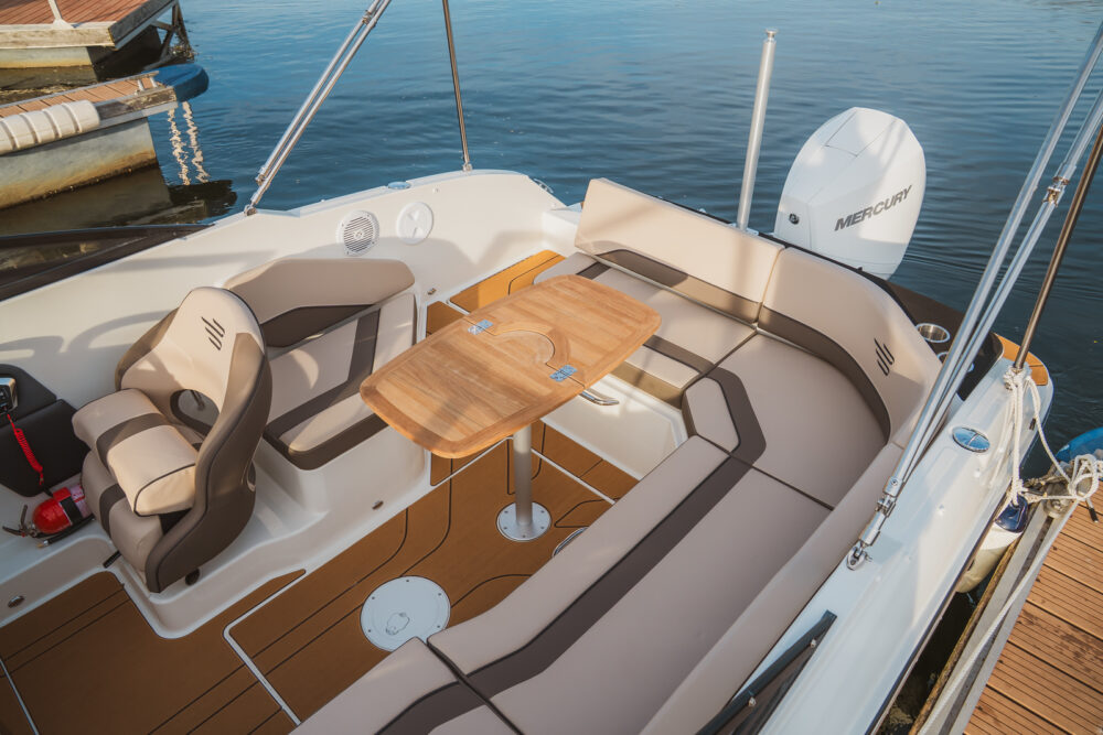 pakiet bimini, pakiet komfort, pakiet preferencyjny (daszek bimini, plandeka portowa kokpitu, bezprzewodowa stacja ładowania smartfonów, przesuwna toaleta morska, materace w sekcji dziobowej, osprzęt ze stali nierdzewnej, stolik teakowy w kokpicie, dodatkowa poduszka w kokpicie, prysznic)