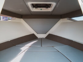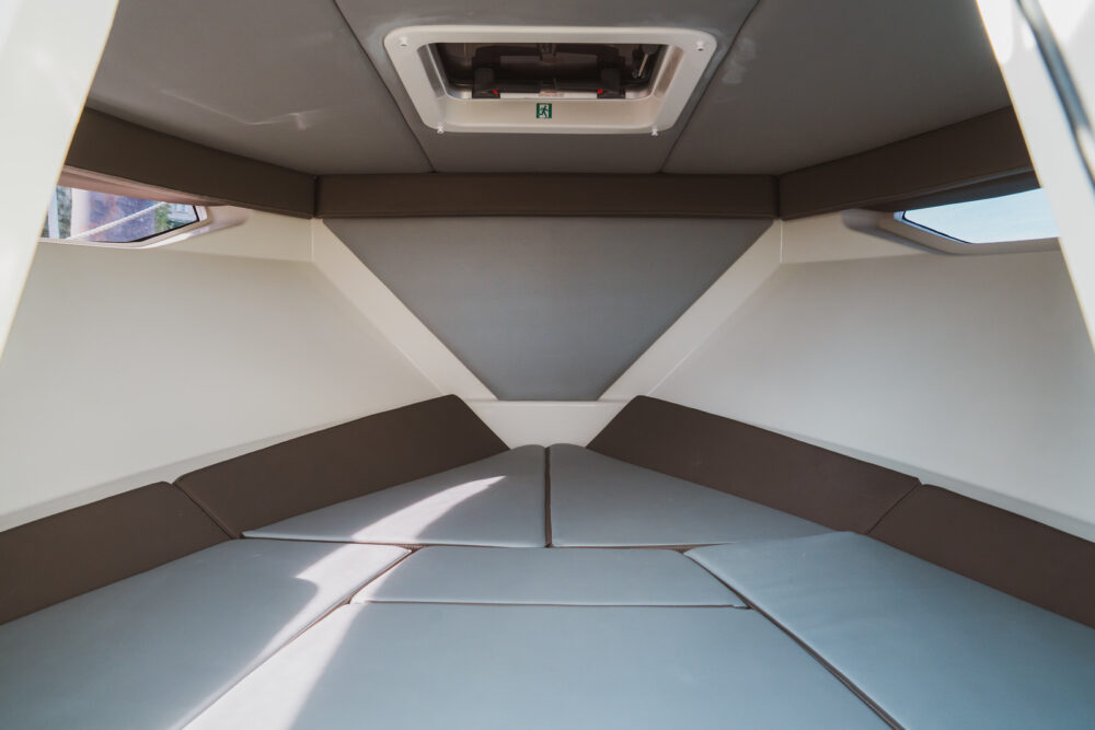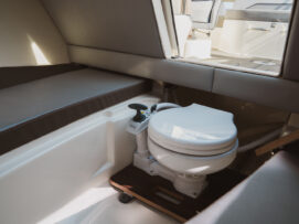 bezprzewodowa stacja ładowania smartfonów, przesuwna toaleta morska, materace w sekcji dziobowej