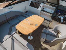 osprzęt ze stali nierdzewnej, stolik teakowy w kokpicie, dodatkowa poduszka w kokpicie, prysznic