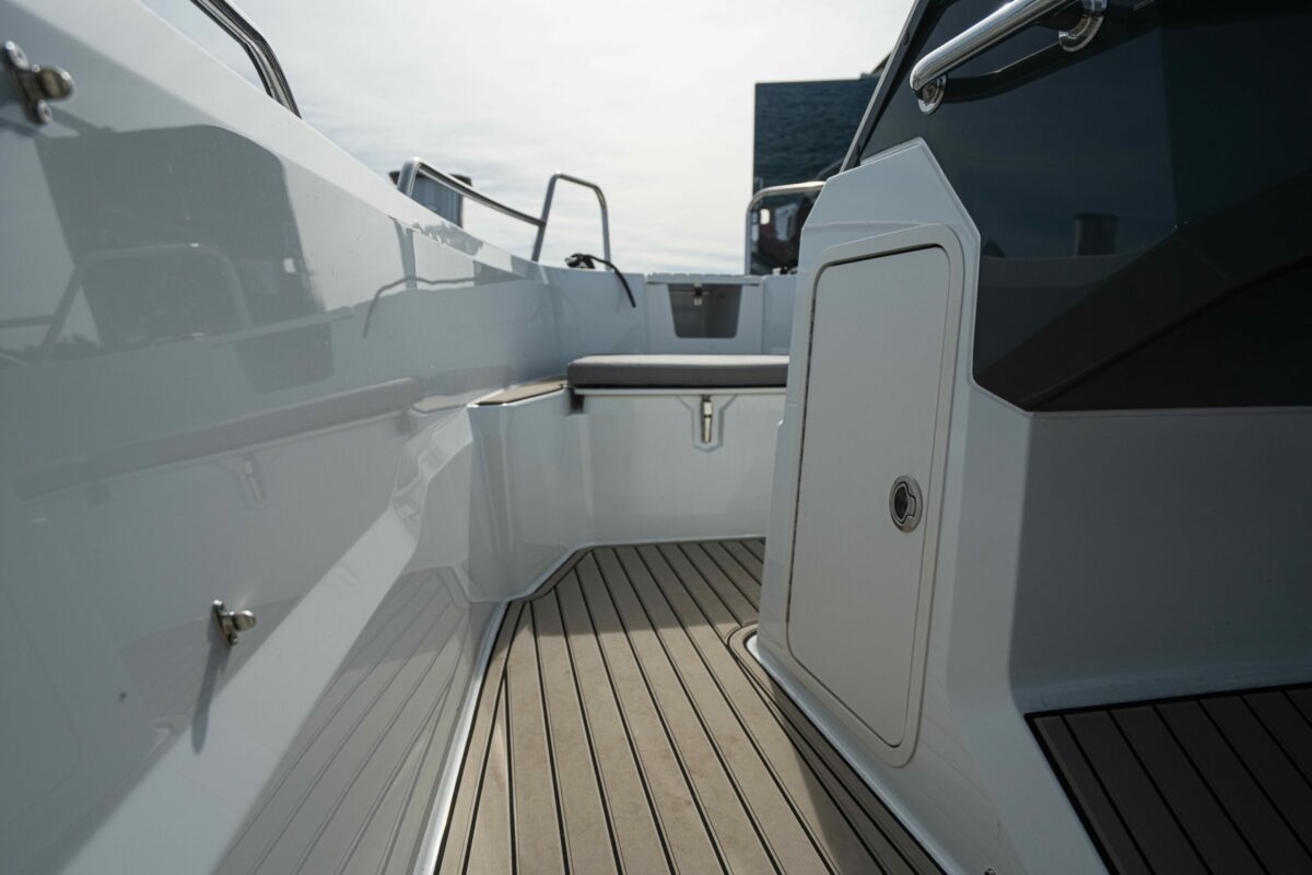 Szerokie platformy kąpielowe ułatwiają wchodzenie z pomostu i są idealne do wędkowania. Pokład wykończony Softdeckiem zapewnia wygodę i styl.